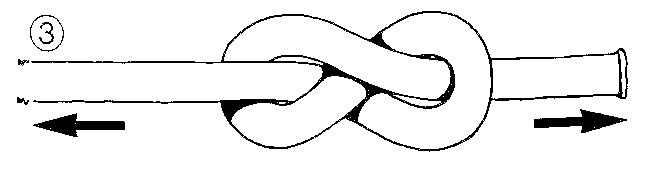 | Ein Knoten entsteht, indem man das lose Ende einer Schnur durch eine Schlaufe führt und dann festzieht, oder indem man verschiedene Schnüre, Taue oder Seile verbindet. Die Fertigkeit, einen Knoten richtig zu binden, und das Wissen, welcher Knoten sich für einen bestimmten Zweck eignet, sind unabdingbar für die Durchführung von verschiedenen, direkt mit dem Höhlentauchen zusammenhängenden Aktivitäten, insbesondere aber auch für die Sicherheit dabei. | |