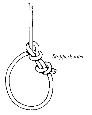 | UeberhandknotenAchterknoten (einfach u. doppelt) Kreuzknoten / Weberknoten / gerader Knoten / Samariterknoten Palstek (einfach u. doppelt) Schotstek oder gekreuzter Weberknoten (einfach, geschlippt u. doppelt) Roringstek / Fischerstek oder Ringanstich / Ankerstek Spierenstich / Anglerknoten, englischer Knoten Mastwurf / Webeleinenstek / Schifferknoten (gesteckt /über einem Pfosten) Halber Schlag (Halbstek) / 2 halbe Schläge Rundtörn mit 2 halben Schlägen (Halbsteke) Garda-Klemme |