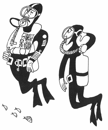 auftauchen: zu weit aufgetaucht,absinken bis gestoppt wird Taucher: brauche mehr Leine |