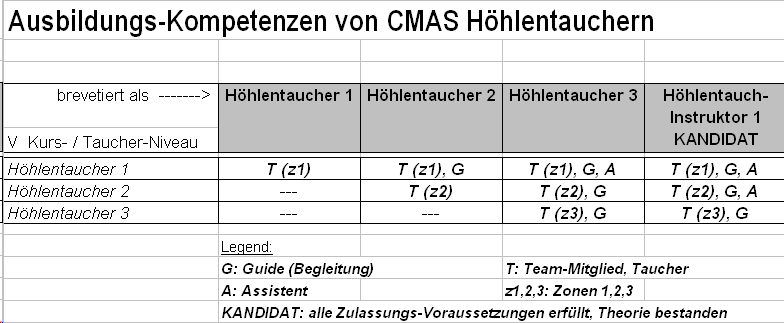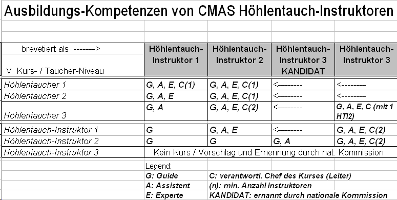 b) Höhlentauchinstruktoren 1 (Cavern) bis 3 (Staff)